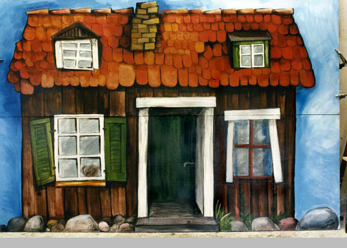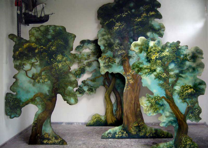 Bühnenbild Peter und der Wolf / gemalt auf Sperrholz / Höhe: 2,5 m